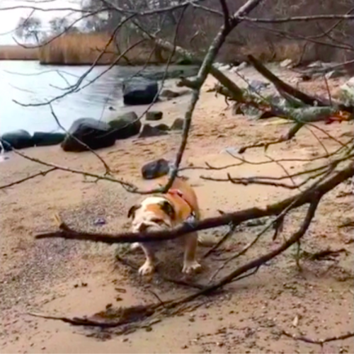 Dog Claims a Stick and Tries to Bite it Off