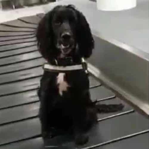 Spaniel Enjoys Airport Conveyor Belt Ride