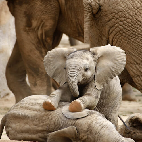 Young Elephant Calf Enjoys Good Belly Scratch on a Rock