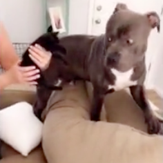 Big Tough Pitbull is Terrified of Tiny Little Kitten