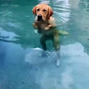 Lazy Dog Miscalculates And Falls into Pool