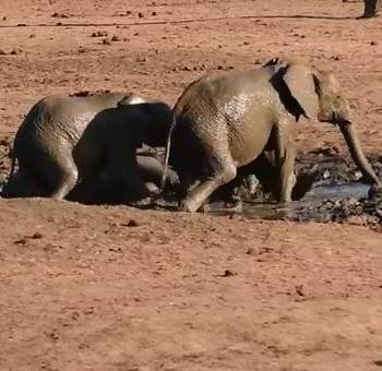 Elephant Herd Have Sloppy Mud Bath Together