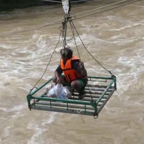 Buddhist Monks Use Zipline to Send Food to Flooded Village in Thailand